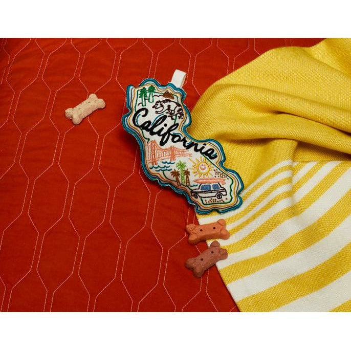 Keep your pooch from developing a paunch with our Wish You Were Here Pet Toys. Shaped like the region they celebrate and styled like vintage postcards, these fun dog toys make great gifts. Featuring a sturdy canvas contoured exterior with colorfully hand stitched icons and imagery of all things we love about California.