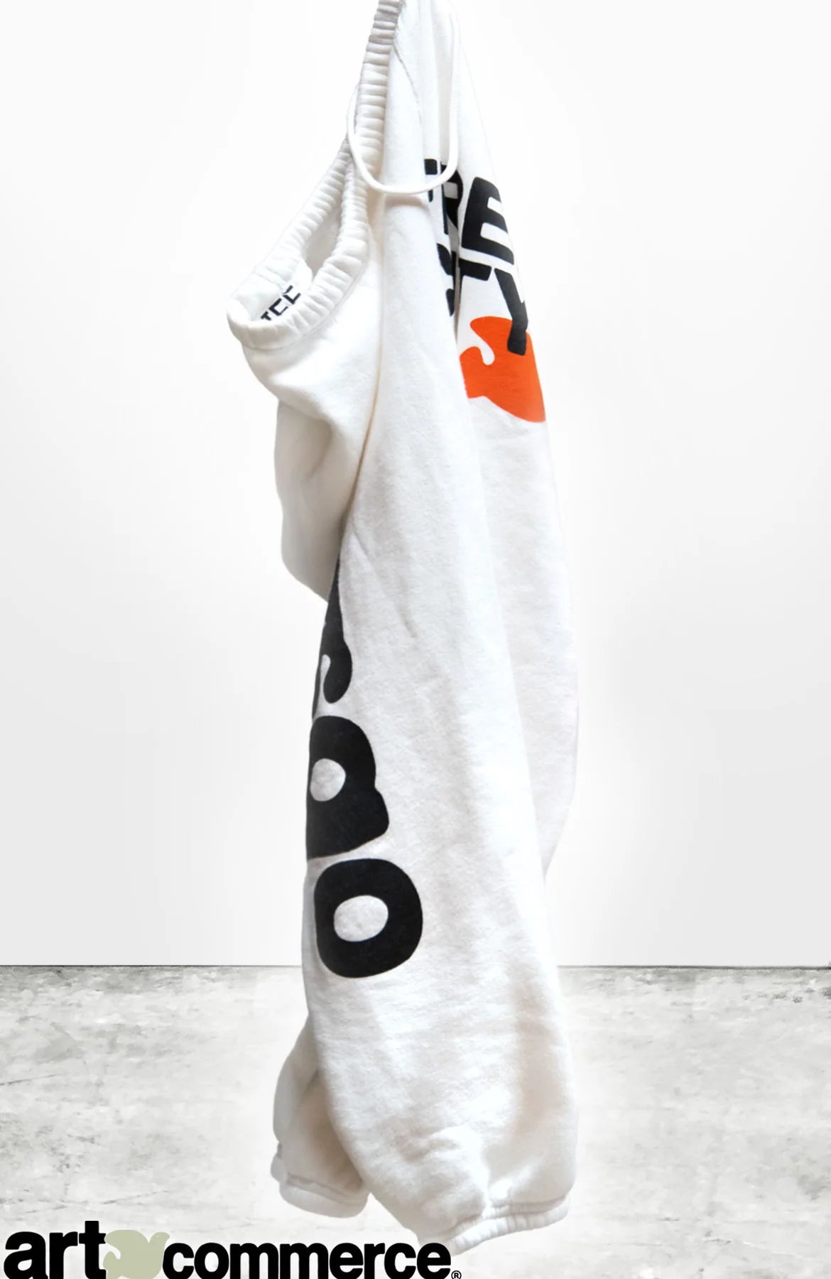 Unisex LETSGO OLDSCHOOL POLYBLEND/FLUFF sweat with classic “FREECITYLARGE” print in black and orange "FREECITYDOVE," black "LETSGO" print down the right leg, covered elastic waist with pull drawstring, with supersoft hand-feel