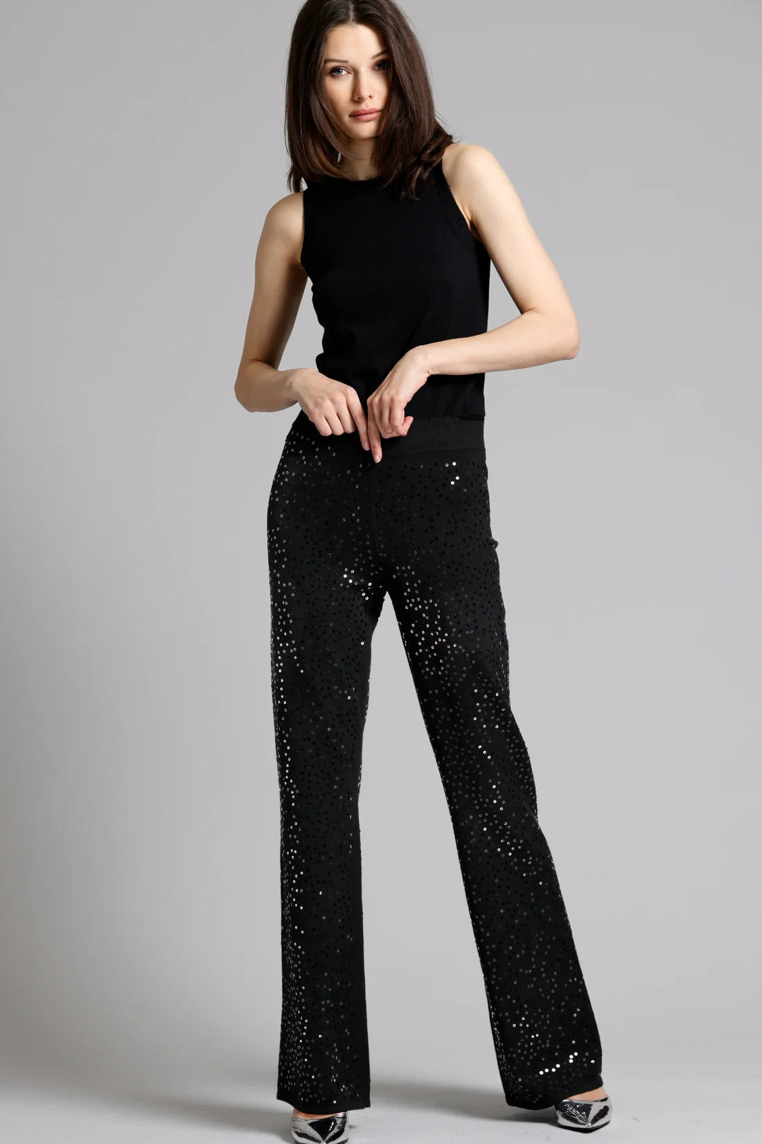 • BLACK VISCOSE SEQUIN VEST
