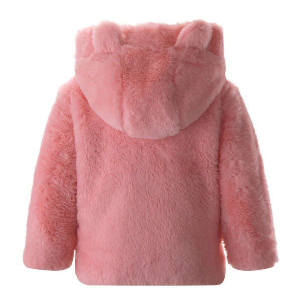 New! Introducing our Pink Teddy Coat, the perfect winter outerwear for your little princess. Made with adorable faux fur in a soft baby pink, this double-breasted coat features flap pockets and a cute hoodie with teddy ears. Keep your little one warm and stylish this season with our cozy and cute Pink Teddy Coat.