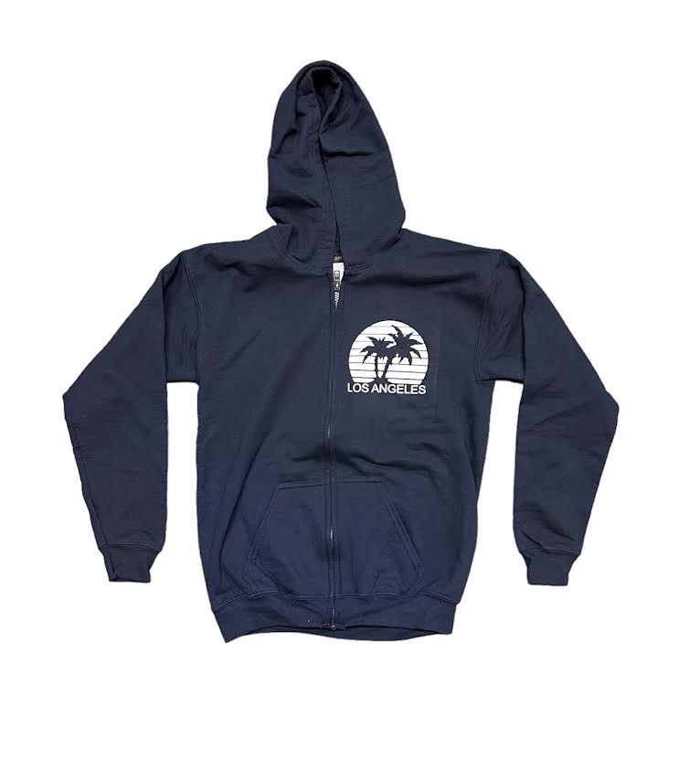 KIDS NAVY PALM TREE ZIP UP HOODIE