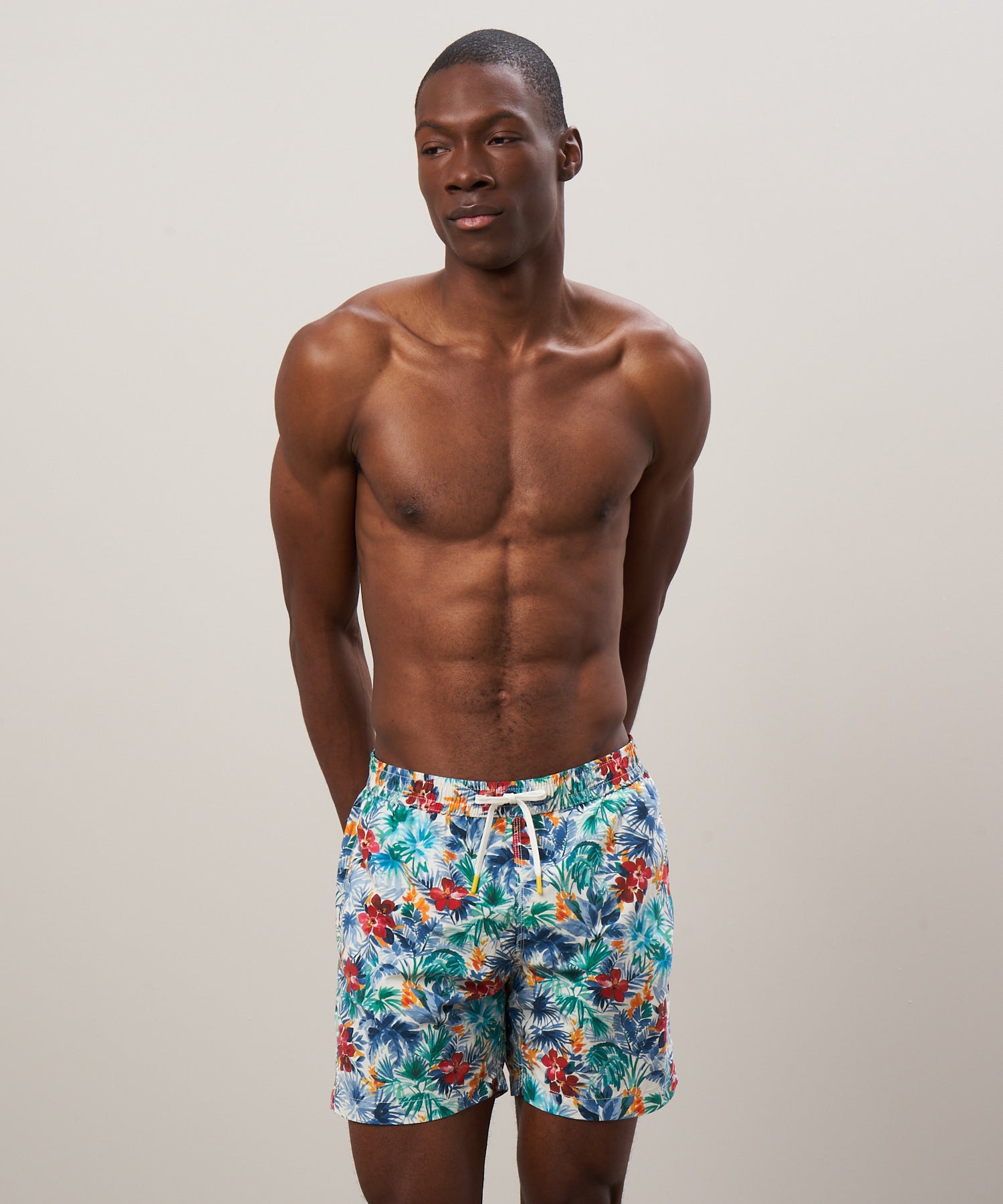 - MENS NAVY PALM TREE SWIM TRUNKS