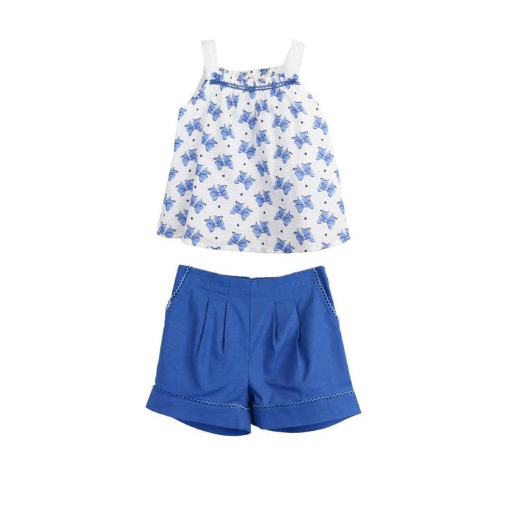 This ensemble pairs a stylish blue vest with a pretty blue bow pattern, perfect for layering over a cute tee on sunny days. Crafted from 100% cotton with a comfortable cotton lining, it offers both style and breathability.