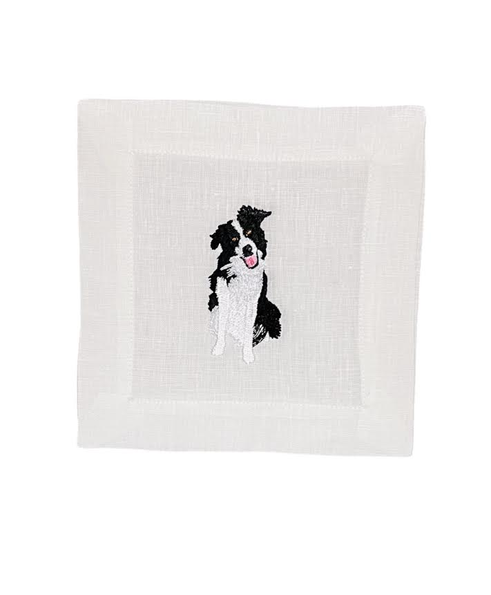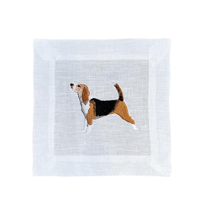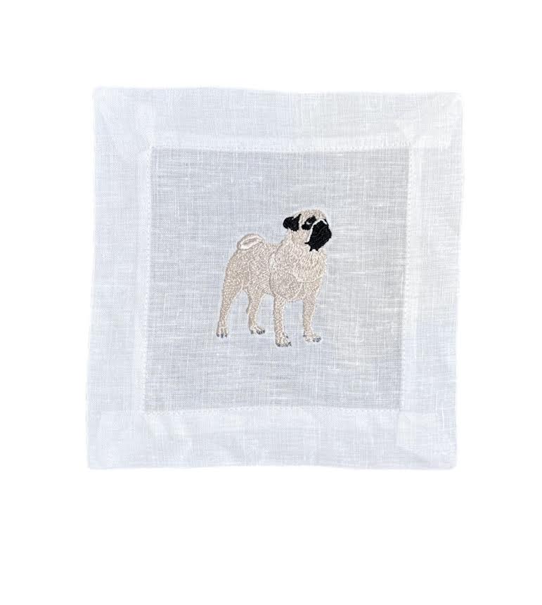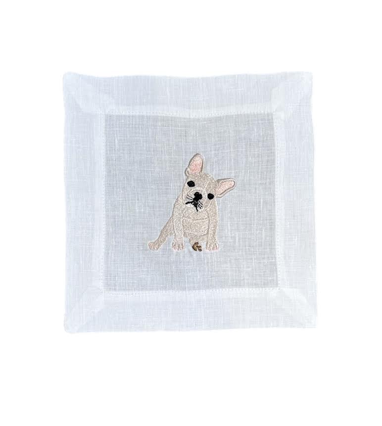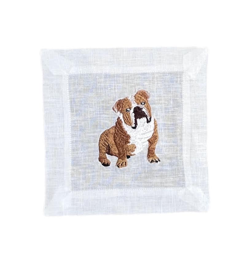 ENGLISH BULLDOGS HAND EMBROIDERED COCKTAIL NAPKIN