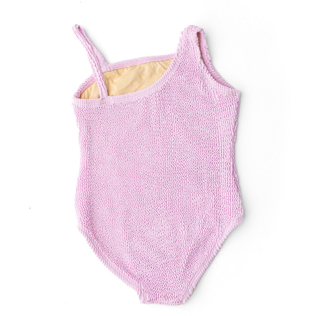• GIRLS LAVENDER CRINKLE ONE SHOULDER BATHING SUIT