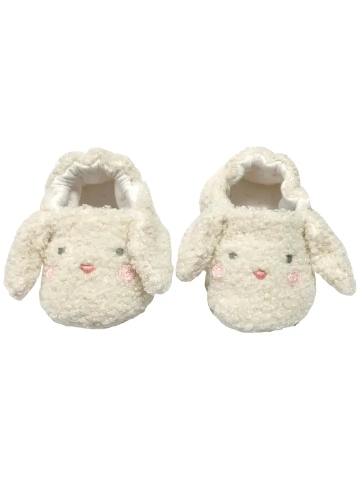 Boucle Bunny Booties. Recommended 0-9 months. Recycled faux fur, hypoallergenic.