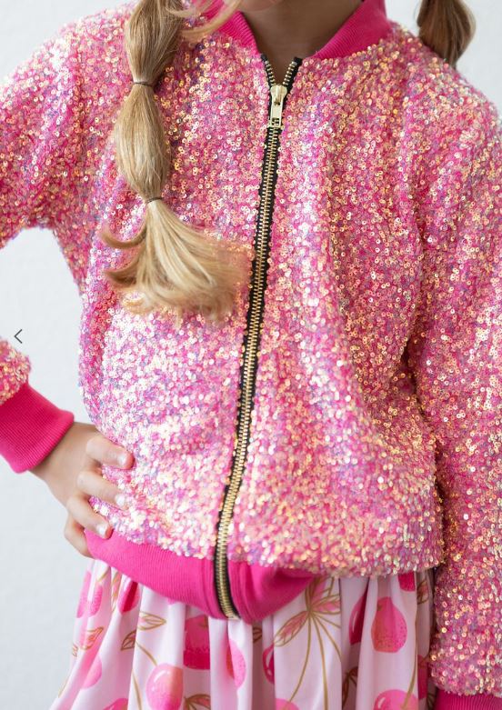 A dazzling piece that will make your little one shine like a star! Perfect for both special occasions and everyday wear. Whether she is twirling, posing for photos, or simply embracing her inner fashionista, this sequin jacket is sure to make a statement. Let her sparkle and shine with confidence and style!