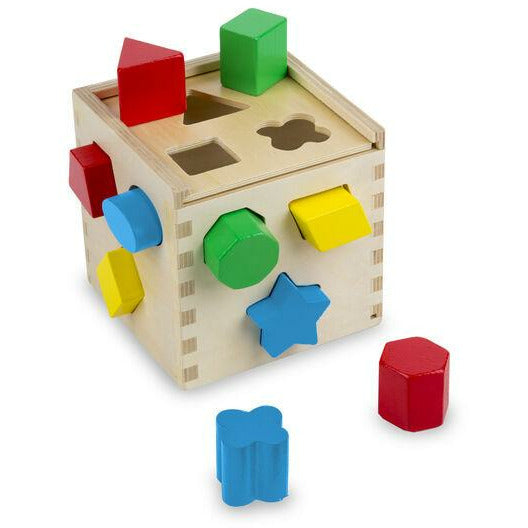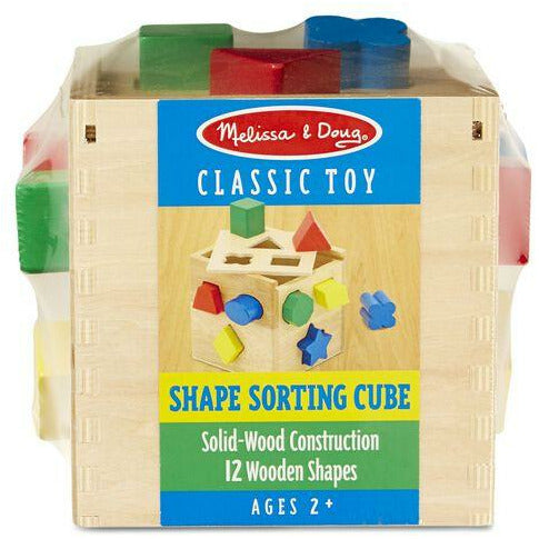 This ultimate shape sorter features 12 chunky, vibrantly colored shapes that make a satisfying "clunk" as they drop into the natural-finish hardwood cube. Then open the lid, take them out and start all over again! A classic educational toy for toddlers.