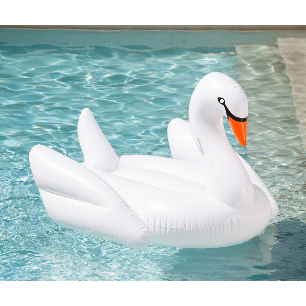 The classic white swan pool float with room for two features sleek lines and a 60'' overall size. The elegant and curved swan neck rises three feet out of the water.